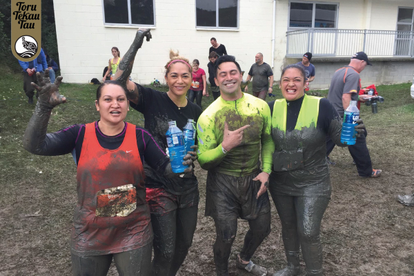 Mud glorious mud is the call from Team Wānanga members Alysha Reti, Anthea Kingi, Nikora Ngaropo and Harata Samuel.